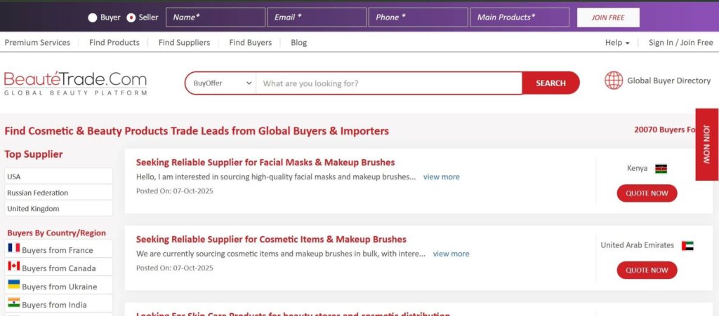 If you specialize in beauty and personal care products, BeauteTrade is a great platform to consider. It connects sellers directly with beauty retailers, salon owners, and distributors around the world. Because it focuses on this niche, your products are more likely to reach the right buyers and lead to repeat business.